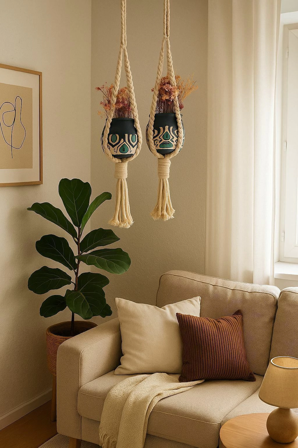 Transforme seu lar com a Dupla Macramê feita à mão por uma talentosa artesã local. Este conjunto é uma verdadeira obra de arte, unindo a delicadeza do macramê e a beleza do jarrinho de cerâmica potiguar, trazendo um toque especial para qualquer ambiente.