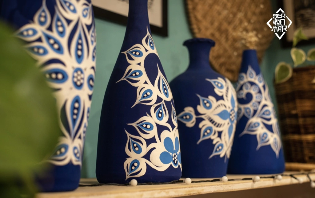 Essas peças vêm definitivamente descontruir o falso estigma de que artesanato não pode ser sofisticado. A cerâmica potiguar chama muita atenção pelo seu forte tom de azul e arabescos em branco que pintadas pelas mãos habilidosas do nosso artesão tão experiente e mestre nessa arte, encontra a sintonia perfeita com as diversas formas de jarros. Ideais para decoração de qualquer ambiente, trazendo vida e cor onde quer sejam colocados. Vale destacar também, a versatilidade conferida por suas diversas formas e tamanhos, as quais possibilitam inúmeras combinações.