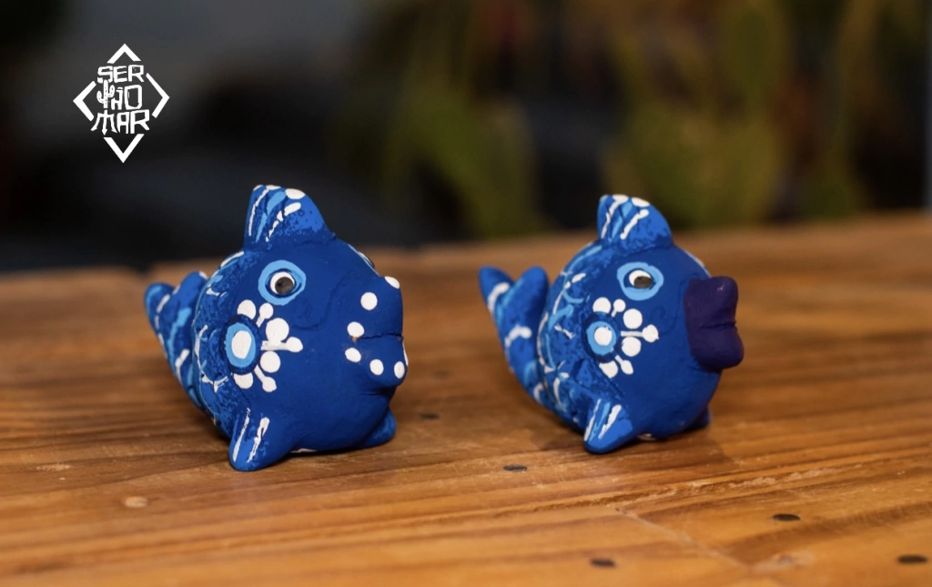Descubra o encanto do Casal Peixinhos de cerâmica, uma peça única e 100% artesanal, pintada à mão na tradicional pintura potiguar e feitos por talentosos artesãos do interior do Rio Grande do Norte. Estes peixinhos são verdadeiros representantes da rica cultura popular brasileira.