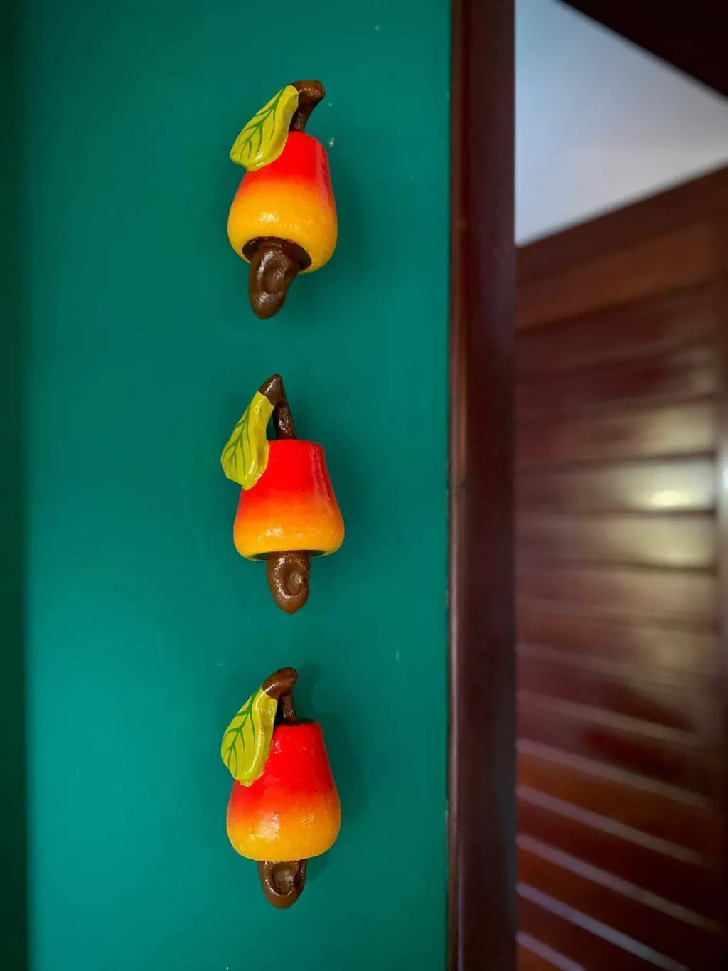 Com um furo na parte de trás, o Cajuzinho é perfeito para ser pendurado na parede, transformando qualquer ambiente em um espaço cheio de personalidade e história. Essa peça é mais do que uma decoração; é uma lembrança de Pipa, um dos destinos mais encantadores do nosso Nordeste.