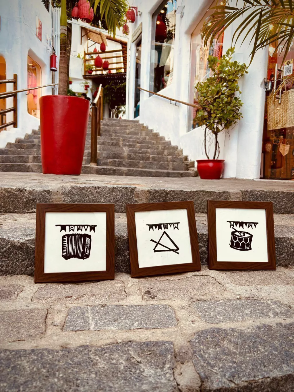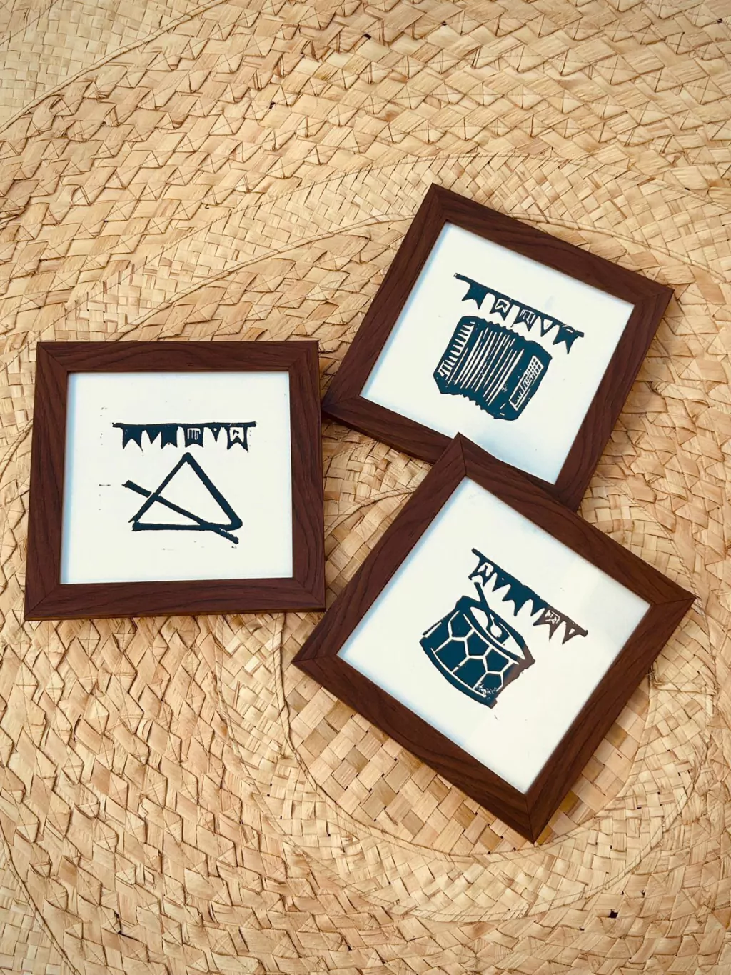 Mergulhe na riqueza da cultura nordestina com o nosso TRIO XILO FORRÓ, Xilogravuras que celebram a tradição e a música do Brasil. Composto por elementos icônicos como a zabumba, a sanfona e o triângulo, esse trio é uma homenagem ao legado de Luiz Gonzaga, o rei do baião.